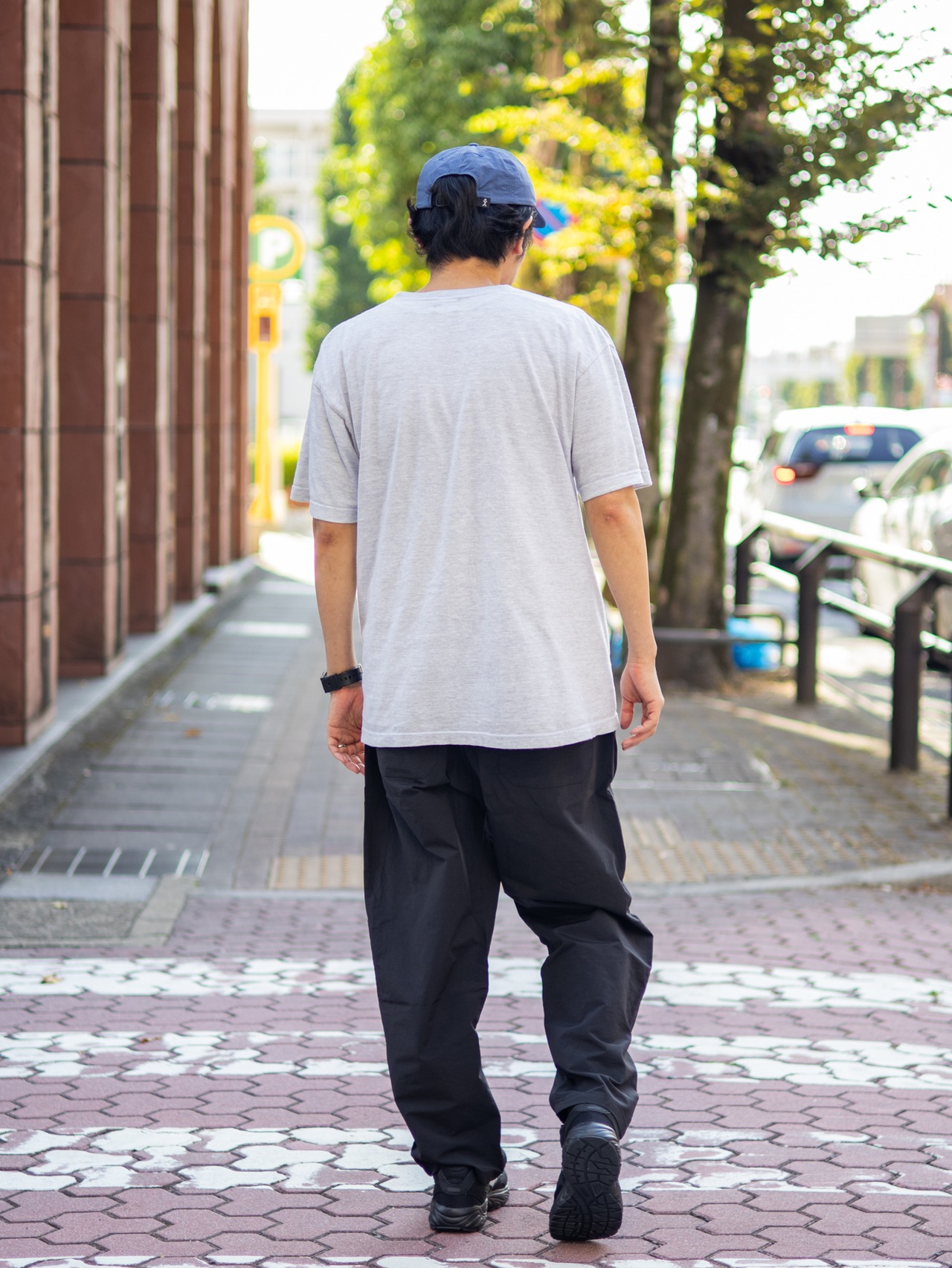 裾にかけて自然に細くなるシルエットと、やや長めの丈感。カジュアルさの中にきちんと感もあり、Tシャツにもシャツにも、季節を選ばず合わせやすいデザインです。