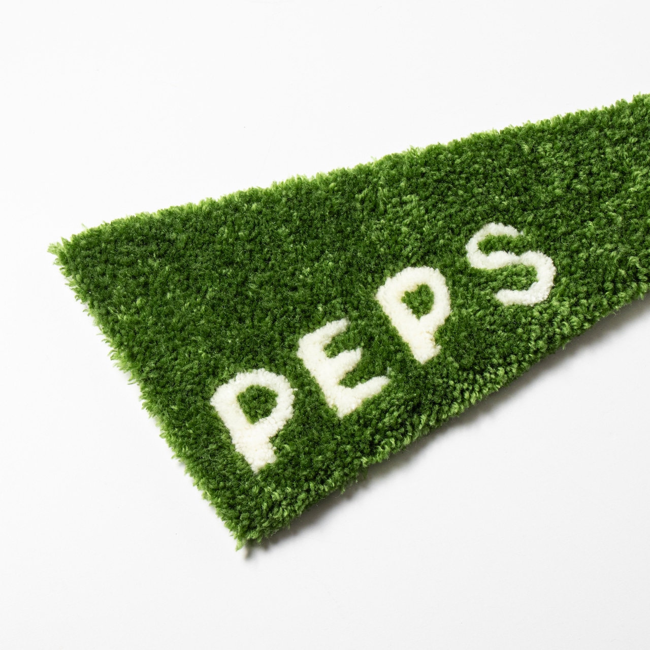 「PEPS」の文字が浮かぶこのラグは、4周年を記念してつくった特別アイテム。