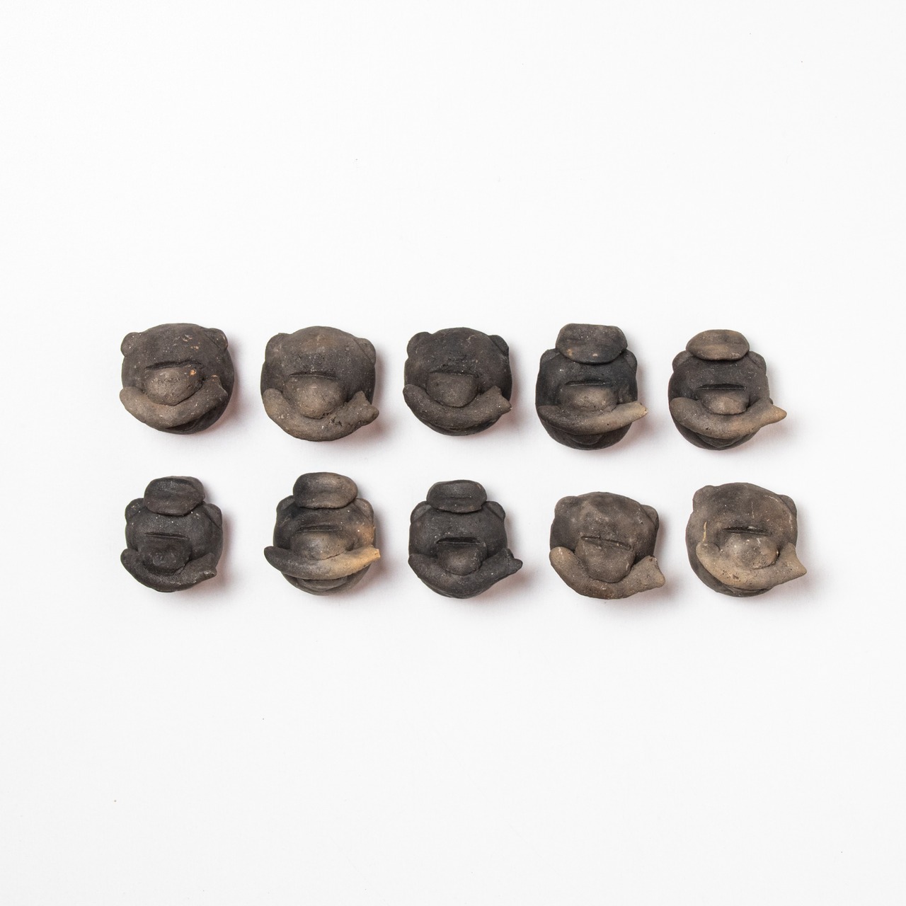 丸いフォルムやとぼけた表情の中に、火と土と空気の、やわらかなリズムが息づいています。